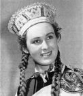 Rame Eihe*, a Latvian State University student, is wearing the traditional headdress and ornament as a performer in the Saulgieji* Folk Theatre in Riga.