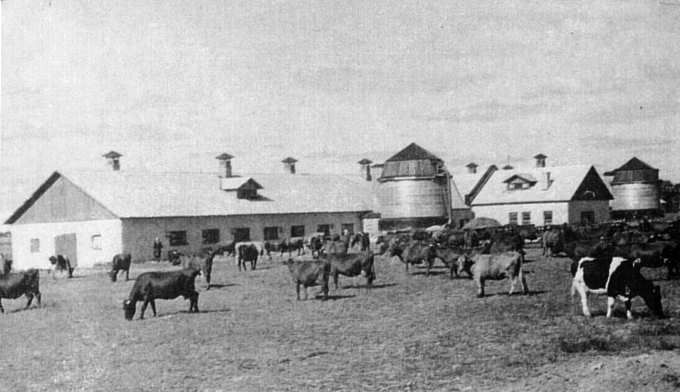 Latvia has a thriving agriculoture base on six million acres of farmland. The livestock section of the Marupe Collective Farm in the Riga District.