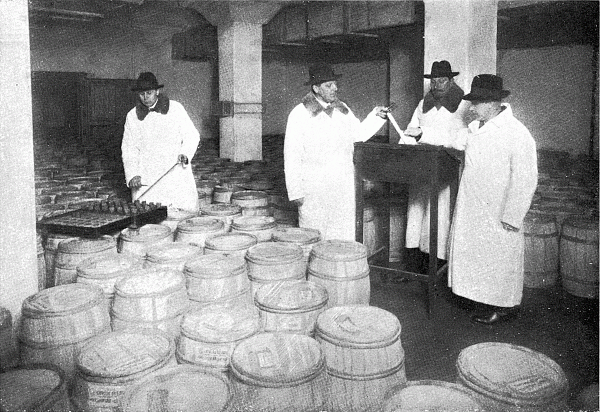 Je nach der Grösse der Molkerei, Qualität der erzeugten Butter usw. schwankt die Zahl der Proben zwischen 10—50% von der Zahl der eingelieferten Fässchen. Die Beurteilung der Butter durch die Sachverständigen erfolgt in Kammern bei besonderer elektrischer Beleuchtung, welche gut Färbungsfehler hervortreten lässt. Jeder der Sachverständigen schreibt sein Gutachten nach Punkten gesondert auf, ohne sich mit den anderen zu verständigen.