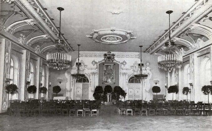 The festive hall of the Jelgava Academy of Agriculture in Viesturs' Memorial Castle. On the wall is a portrait of President Ulmanis, painted by L. Liberts.Referring to the European War, Mr. Munters said: "The first months of the war have opened our eyes to the great national and social changes which are typical of the present age, and which we had almost forgotten in the period of seeming peace, which in reality was only a respite after the last conflict. These months of war have also gradually opened our eyes to the future, and we wonder if the collapse of European civilisation, which we perceive as the inevitable result, is really justifiable in comparison with the situation which prevailed before the war. And we also wonder if this great clash will lead at least to lasting peace. There is no answer as yet to this question, but sooner or later it will be forthcoming.