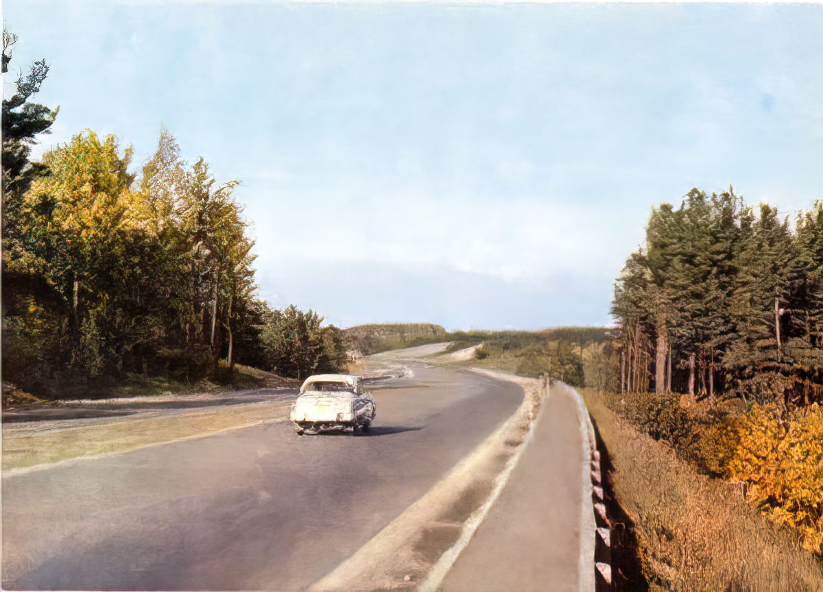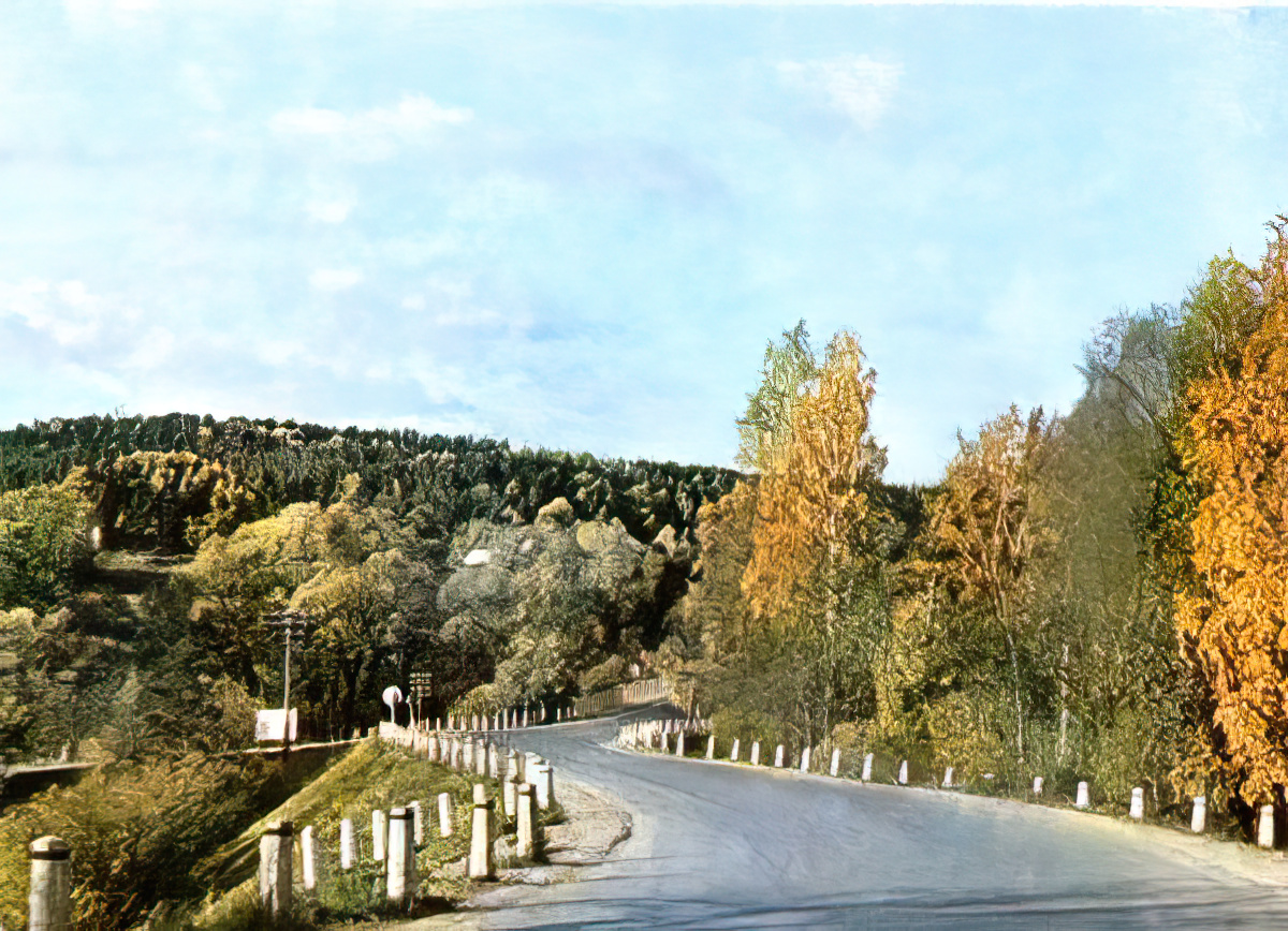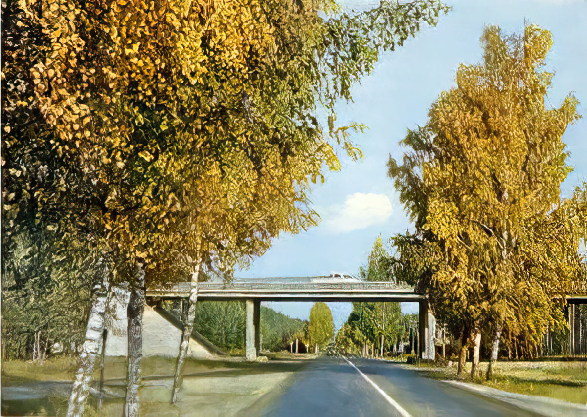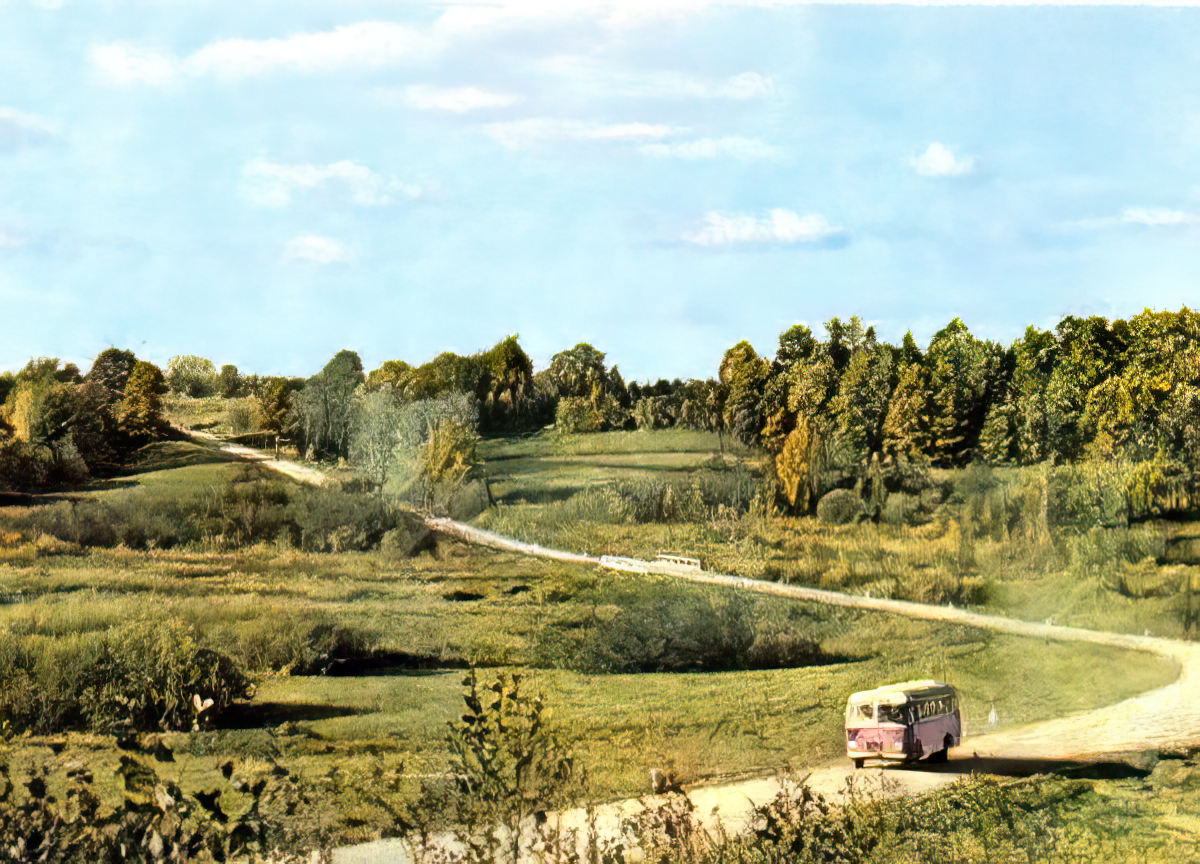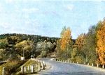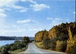 Postcard folderThis set was certainly meant to extol both the scenery of Latvia as well as road building progress under the Soviet system—judging by the popularity of highway overpasses. With the occasional car or bus wending its way towards its destination, it's a bit like a Soviet version of the 1960's television commercial of the same era inviting us to "See the U.S.A. in your Chevrolet!"