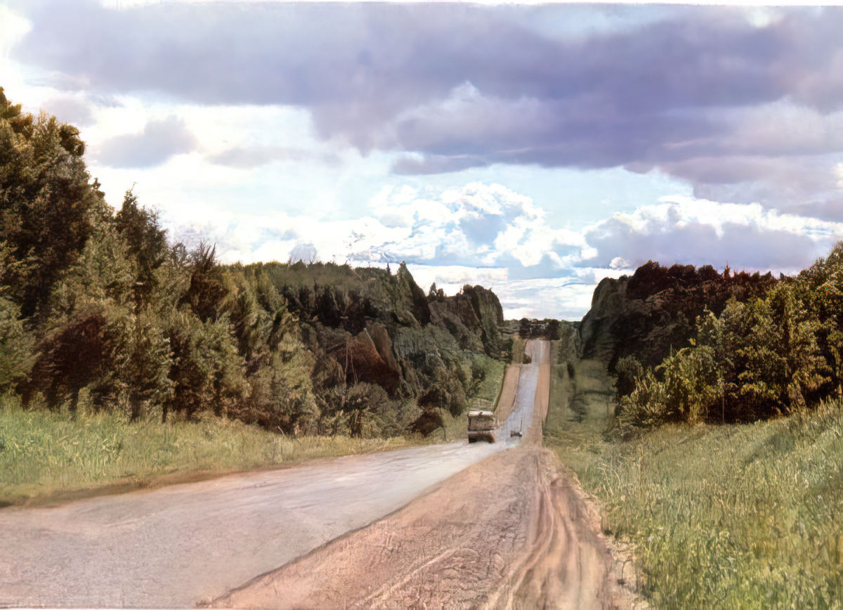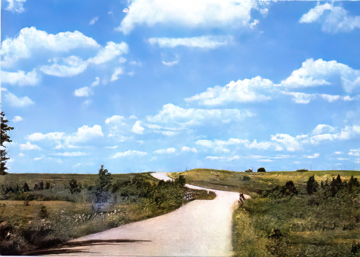 An internet search turned up another of J. Opmanis' images preserved at zudusilatvija.lv↗ ("Lost Latvia"), a project of Latvijas Nacionālā bibliotēka, the Latvian National Library. While another "along the roads" image, it does not appear to be part of this set.