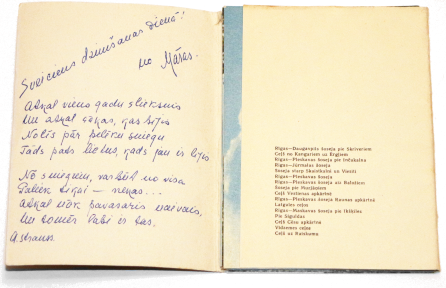 It's customary for Latvians to inscribe a gift with a poem to mark its time and place in one's life: that of the giver, of the receiver, often both—and so, hope eternal under Soviet rule... Spring, not knowing or caring what went before, ignorant of the present, comes once more. And it is good, for all that.