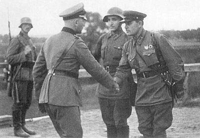 | 2 | We should note that Stalin occupied Poland in partnership with Hitler. The Soviets transmitted radio signals to guide the invading Luftwaffe. Moscow congratulated Berlin prematurely on the fall of Warsaw. Lastly, in this, yet another partition of Poland by its neighbours, the USSR occupied 51% of Polish territory to Nazi Germany's 49%. At the meeting of invading fronts, German and Soviet troops congratulated the other on the annihilation of Polish sovereignty. (See photo, above.) |