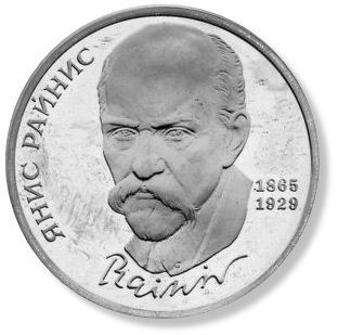 Rainis on the one ruble Soviet coin. Rainis's