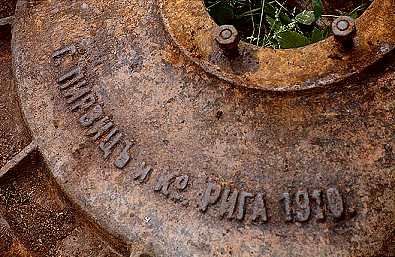 Peters' grandfather installed a state of the art turbine to drive the mill in Mordanga, Kurzeme. Over seven decades later, during renovations, the old turbine came out: