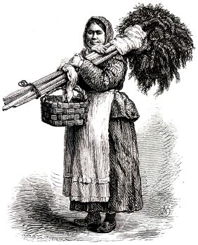 wedding-day, and the attractions of the maiden are not seldom measured by her store of spoons and linen. Each cottage has its brass-bound chest, receptacle of the family goods; and here is laid away every piece of homespun cloth, and every purchase at fair or market that can be spared for the daughter's portion. Great importance is attached to the ornamented towels, and it was an old custom for the newly-made bride to present one to the lord of the manor, who in return gave her a handkerchief enclosing a small sum of money. Unmarried women are the exceptions here; and those who through extreme plainness, or deformity, or illness are precluded from marriage, are known as Christ brides;" and if they are poor and able to work, they are often trained to be readers of prayers for the dead, during the interval between the death and the funeral — a sad life, cut off from ties of personal affection, and always in the house of mourning.