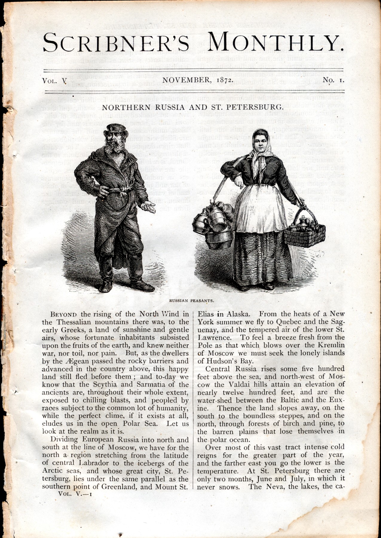 "Northern Russia and St. Petersburg" was the lead article in its issue, suggesting the importance of the region and interest in the topic. To save a copy — and appreciate the detail in the engraved illustrations, click the download icon in gallery mode for the original 600 DPI page scan.