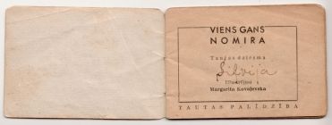 | 3 | Mothers' Cards were first distributed at this Family Day, starting May 17, 1942, made necessary by the circumstances of war, where the head of the family was at the front, leaving their wife and children without support. These cards allowed mothers to not wait in lines, meaning they would not have to leave their children for extended periods of time. Mothers with infants less than one year old or with four or more children of which at least one was less than five years old were eliglble. —Šilde, Ād. Ardievas Rīgai. NY : Grāmatu Draugs, 1988, 203. lpp.; Ģimenes dienas svinības Latvijā. Tēvija, 1942. g. 18. maijs. |