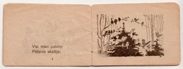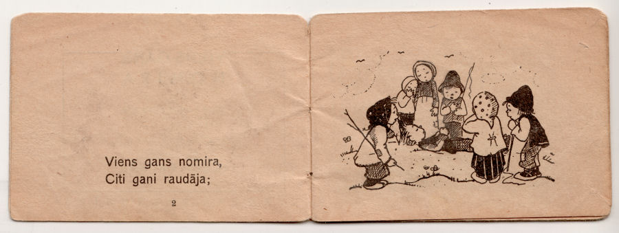 Despite the German propaganda machine describing it as "cheerful" reading for the youngest readers, our first and far more sobering impression remains, that this booklet with its sorrowful tale—so common to Latvian folksongs—was intended to help innocent children deal with the death and destruction of war.