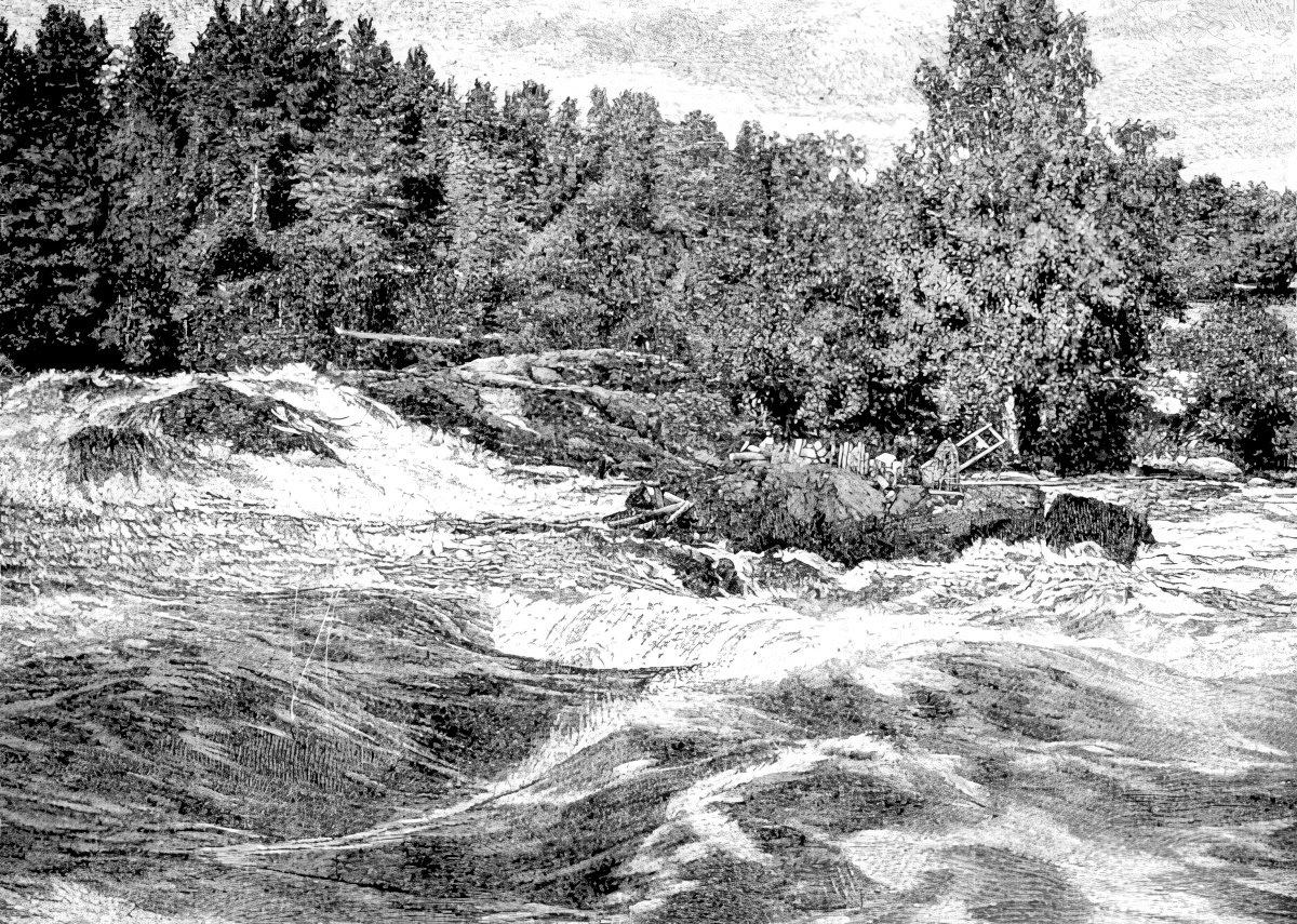 Most celebrated of the sights of Saima is its outlet, by which all these gathered waters from a thousand miles rush down to Lake Ladoga. The stream has but a few miles to descend some hundreds of feet, and the first part of this passage is made with a swift rush that makes the swollen waters seem a single roaring rapid. Nowhere else in the world is there a mountain river of such volume and such speed. The rapids below our own Niagara carry a larger volume, but over a much lesser descent. The chief plunge of all is known as the cataract of Imatra. It is, however, scarcely a cataract at all in our sense of the word, for there is no perpendicular fall of the water; there is only a long slant in the swiftly plunging current, a mad roaring and tumult where rocks interpose, and a terrible arrow-like swiftness of smooth water in the open spaces. There are several such rapids as this in Finland built on a smaller scale; and the Finns have learned to descend the others, and will take tourists down them in a boat for a price, just as we do in more sophisticated lands. But no one has ever shot the mighty rapids of Imatra. At their narrowest point they rush between granite cliffs scarcely fifty feet apart. They deafen us with their tumult; they awe us with their speed and power. Of all the sights of Europe, this is one of the most unforgetable. Many a time you will see again in your dreams the mad rush of the waters of Imatra.