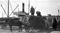 Verladung der Butter in Dampfer. — Loading butter onto a steamer.