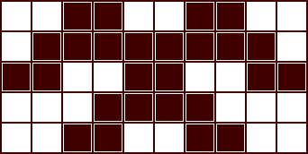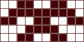 Jumis constructed using 3-abreast diagonals showing alternating crosses and boxes