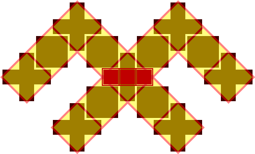 Jumis constructed using 2-abreast diagonals showing 2-wide boxes overlay