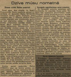 Rather, it is honoring Latvians who bonded into a community and preserved tradition in the face of these hardships. How might Latvians have celebrated their first holidays in the DP camps? Christmas and New Year's from the "Life in our Camp" column of Mītnes viesis, January 5, 1946.