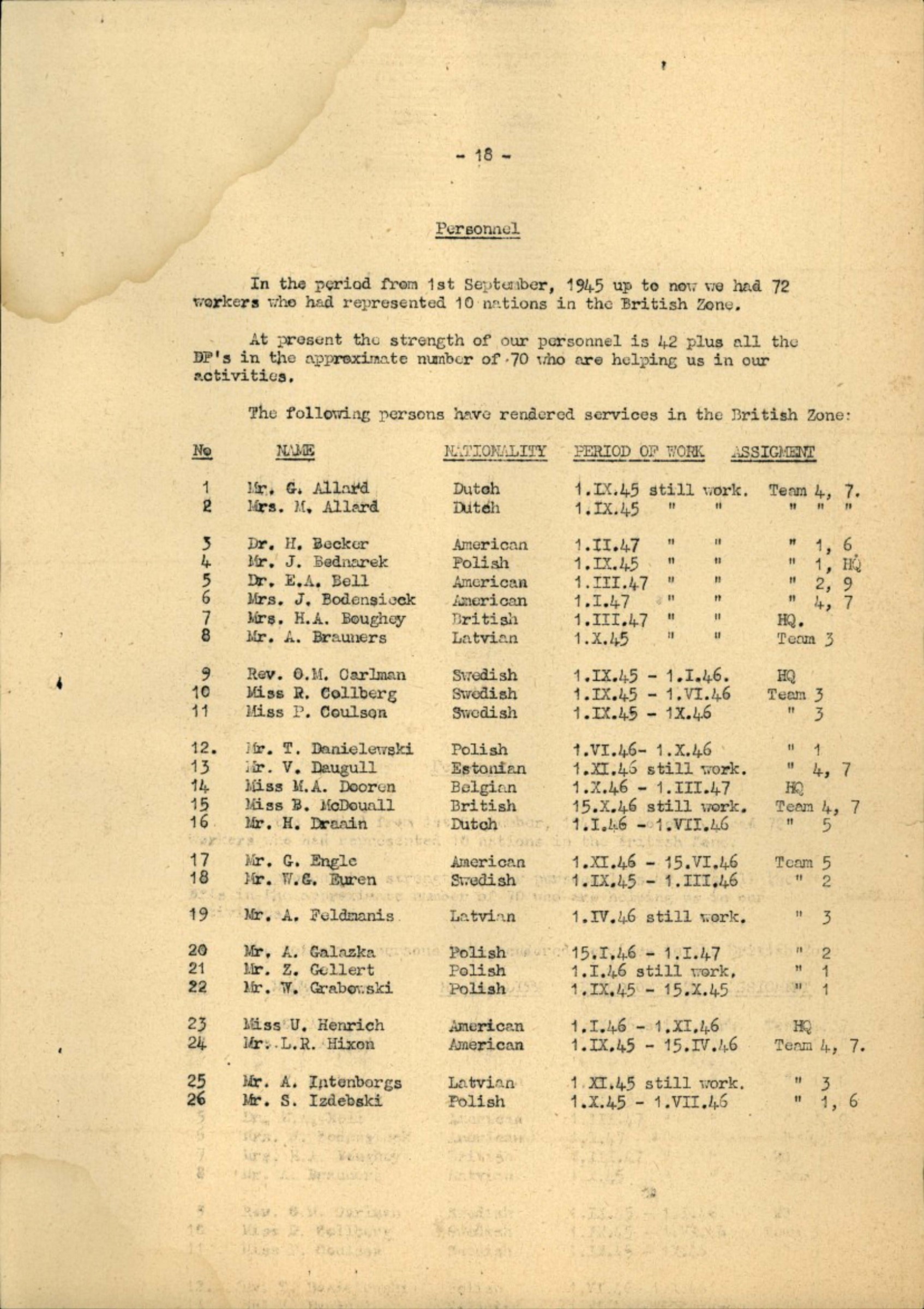 In the period from 1st September, 1945 up to now we had 72 workers who had represented 10 nations in the British Zone.