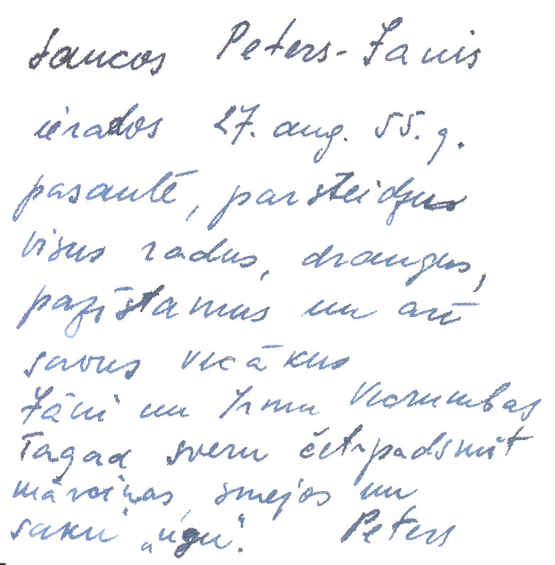 I call myself Peters-Janis I arrived into the world 27 August 1955, I surprised all the relatives, friends, acquaintances and also my parents Jānis and Irma Vecrumba