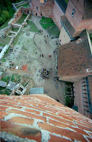 This week's picture is from our vacation this month in Latvia, looking out the tower of Turaida's castle in Sigulda. (It's a LONG way down—Silvija was holding on to my coat just in case!)