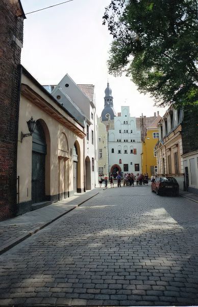 As early as 1993 (when this picture was taken), Peters knew Latvia was heading towards becoming more cosmopolitan when he spied this gaggle of Japanese tourists in Riga, checking out the "Trīs Brāļi" (Three Brothers), the oldest residences in Riga, dating from the 15th century.