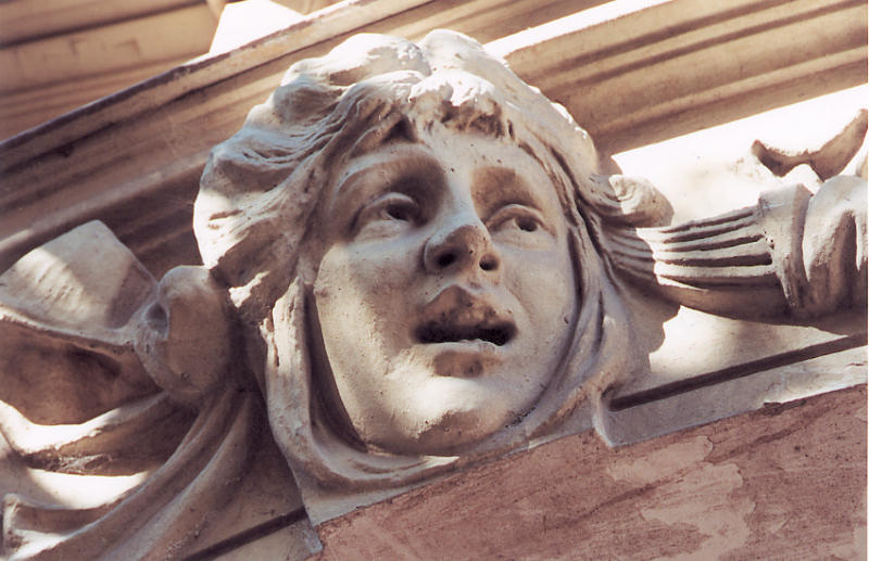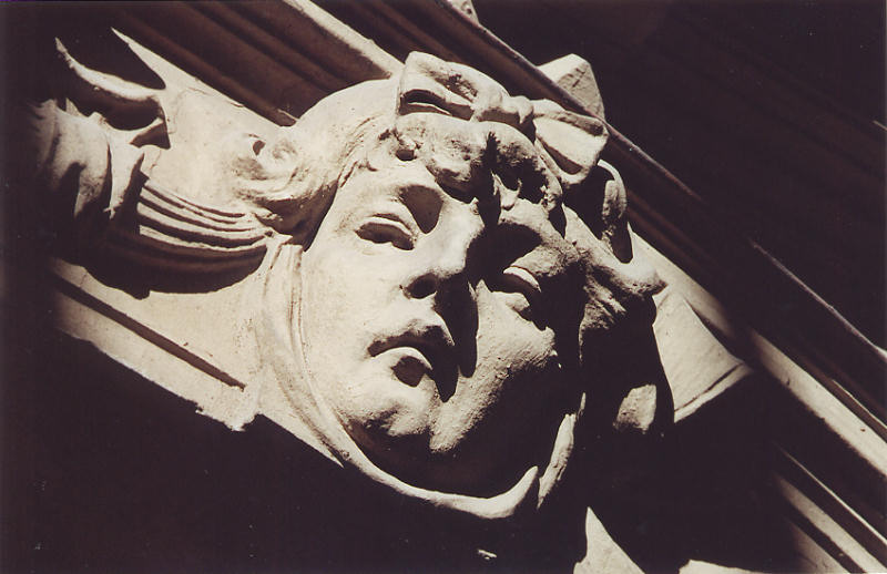 three heads over the main gate arch, symbolic of a person's path through