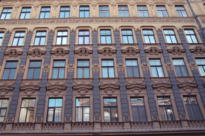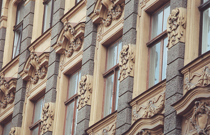 No. 9 Alberta iela is another sample of eclectic turn-of-the-century style, built in 1901 as an apartment house, designed by Konstantīns Pēkšēns↗. Pēkšēns was one of the originators of the Latvian architectural Art Nouveau movement and "author" of hundreds of Rīga's masonry and wooden buildings, including Nr. 12 Alberta iela.