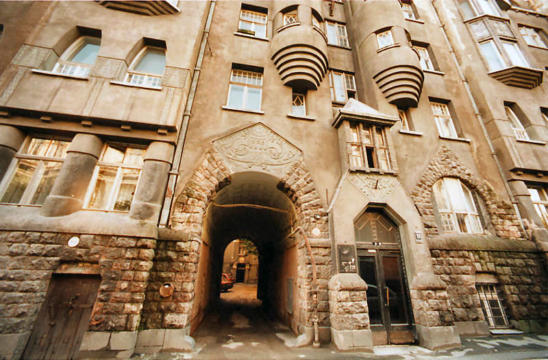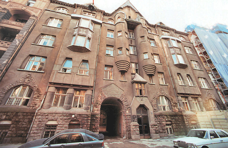 Eižens Laube↗ (May 25, 1880 – July 21, 1967) was born in Riga as a son of a potter. In 1899 he graduated Realschule↗ and started architecture studies in Riga Polytechnic Institute. While still a student he started to work in Konstantīns Pēkšēns↗'s architecture office in 1900. In 1904 he took a study trip to Finland where he was introduced to National Romanticism↗ in architecture. Laube graduated from the Riga Polytechnic Institute's department of architecture in 1907. Soon after he established his own architectural office in Riga. He also became lecturer in Riga Polytechnic Institute.