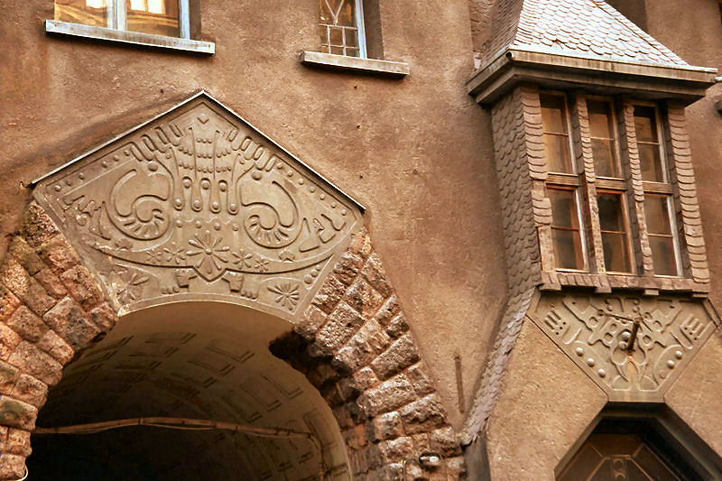 Before World War I↗ Laube was one of the pioneers of Riga Jugendstil↗ movement, notably the lavishly decorated apartment building at 23 Tallinas Street 1901 together with Pēkšēns. His best-known works are in the National Romantic version of the style. He mainly used natural materials, different-colored bricks, local varieties of stone, metal, wood. Laube's building ornaments were typically flower and geometric motifs, and his buildings were usually directed upwards in a vertical shape. Later his works especially in the 1930s were influenced by more neo-classical influences.