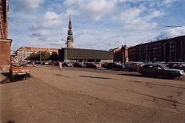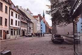 An open invitatation to those trying to rebuild.* As I get to the edge of Vecriga, a different perspective of the same street shows it's not as crowded as first appeared. Like almost everything around here, how things look depends on your point of view. Bustling or bleak, take your pick.
