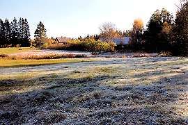 The first frost signals its arrival. It's crunching underfoot as I make my way to the outhouse in -2?C the next morning. The days are short already; it's 8:15 and my shadow still reaches back to the mill. The warm and inviting mill...The kitchen oven and the fireplaces all take in wood through small cast iron doors at their base. They feed up into two massive chimneys through a maze of flues. And once heated, the brickwork radiates warmth all night. The bright rays sparkling off the mill stream belie the chill in the air. Around back, the mill still wears its white top-hat. Frost lurks vampire-like in the shadows, the dawn light its mortal enemy. Yet it tenaciously defies the odds. Finding some empty furrows, it clings fast to the frozen ground - and to its moment in the sun.