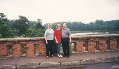 Inara, Silvija, and Peters on the brick bridge crossing the Venta in Kuldiga