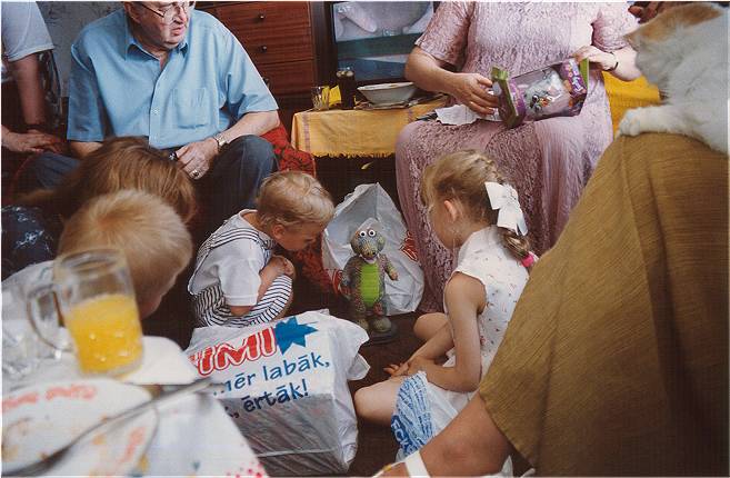 the kids at dinner in Vecaki