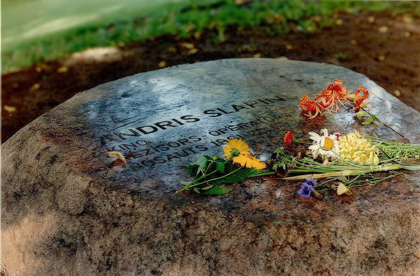 Memorial to Andris Slapiņš, shot by Soviet Black Berets