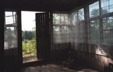 My mother still recalls passing time sitting on the porch, perhaps reading. Badly weathered, roof sagging, it still tenuously holds on a shadow of its former charm. The first thing my mother did was hang curtains as a reminder of what it once was, and could be again.