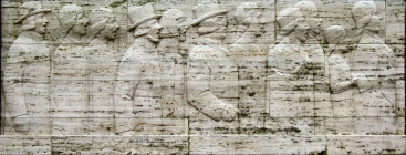 The Chain-breakers, Važu rāvēji — in the middle the elder, the younger at both his sides, have grasped the the heavy chains binding them together and strive to break their bonds of subjugation.