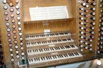 Liepāja, Holy Trinity church, well-worn seating arrangements, sitting at the console