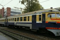 The commuter rail heading north to Ķīšezers.