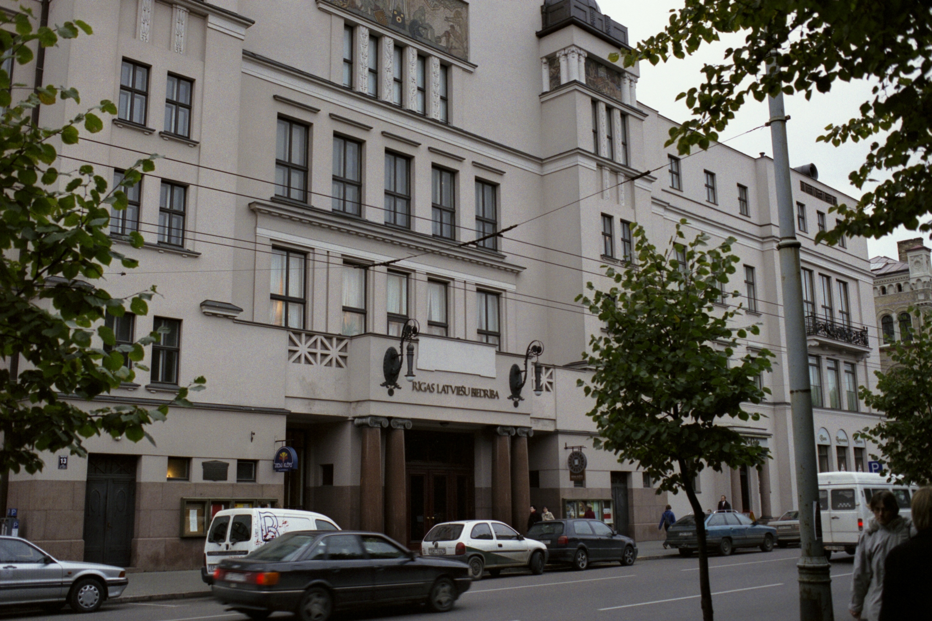 A view down the street to the right, the Rīgas Latviešu biedrība, the Rīga Latvian Society